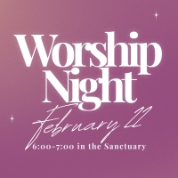 Join us February 22nd for an intimate night of Worship. This is a monthly event where we take an uninterrupted hour to dwell in the presence of God and worship together. See you at 6 pm in the sanctuary with Fellowship to follow